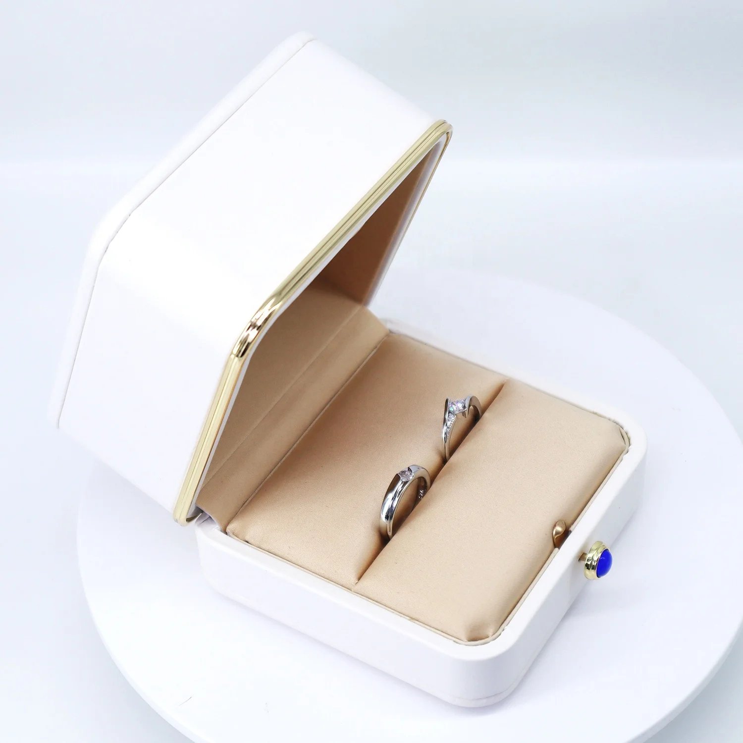 Luxury high-end white PU ring box for wedding gift