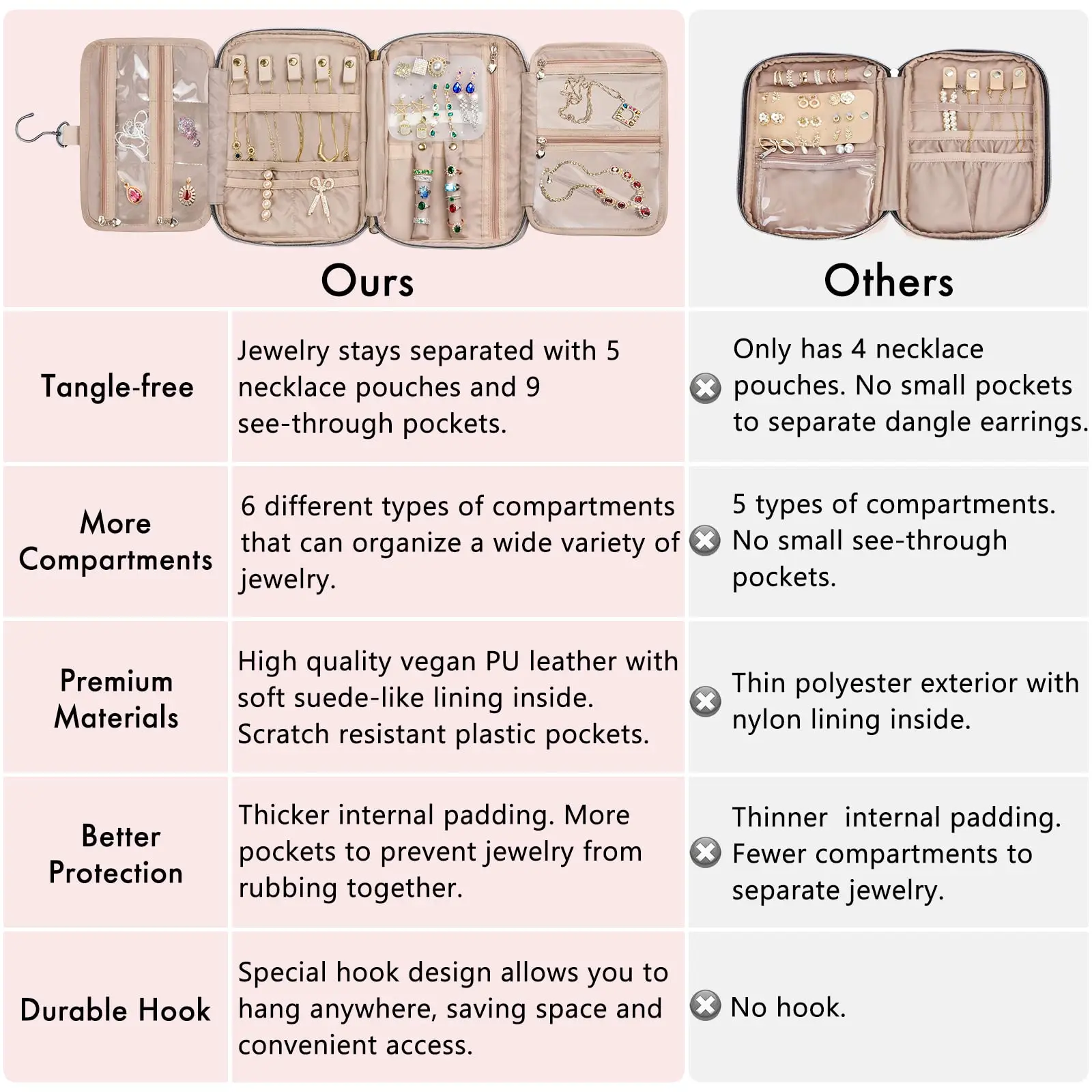 Product Name | Jewelry Organizer Case Large Capacity Travel Jewelry Case for Tangle-Free Earrings Necklaces Rings Storage Travel Accessories |